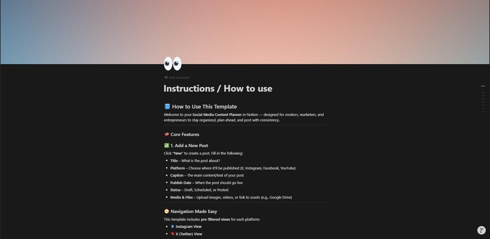 • Getting Started Guide: Clear instructions on how to set up and use each section of the content planner in your workspace.